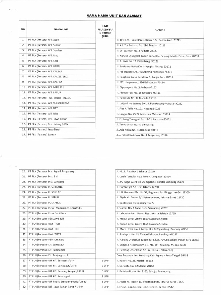 Daftar Kantor Pln